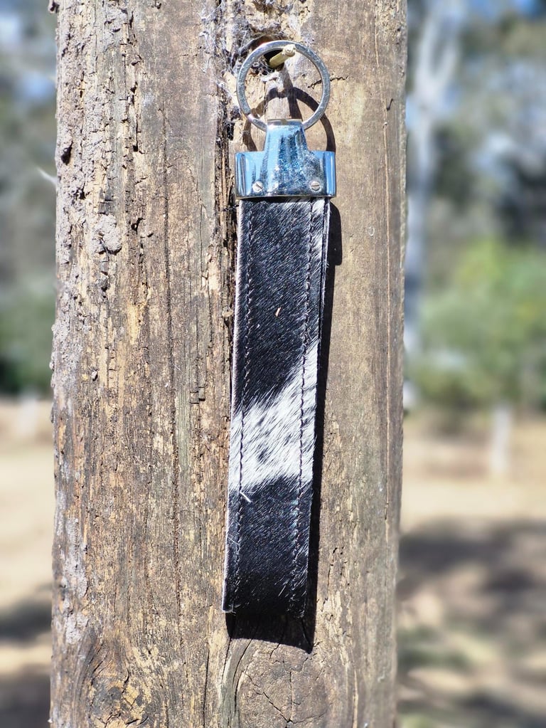 Explore our unique collection of western-inspired cowhide keyrings today.